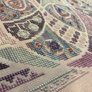 On the other hand for the past couple of weeks I have only stitched on one project - Plum Pudding by Glendon Place. I would really like to get the stitching finished this year and then only have the beading to finish.